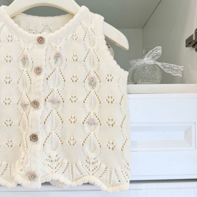 【予約商品】[90-140cm] eyelet scallop knit vest
