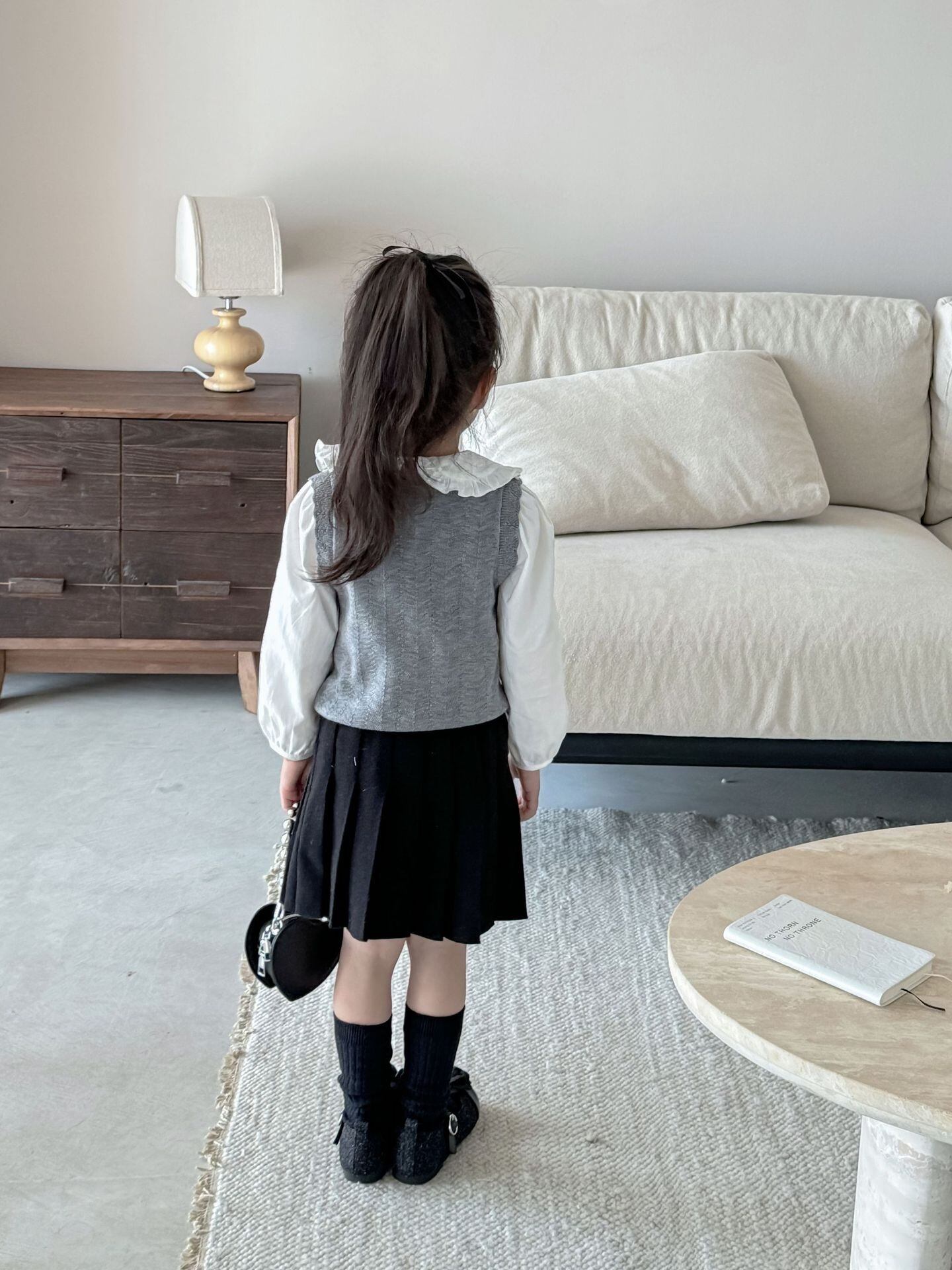 【予約商品】[90-130cm] scallop knit gray cardigan