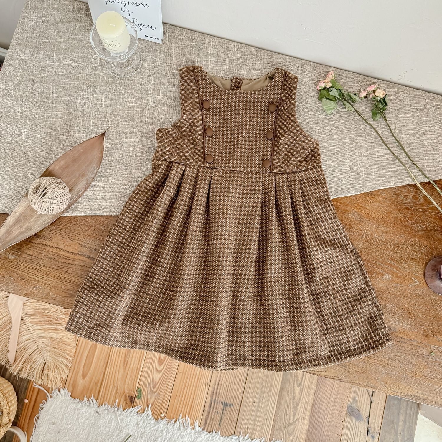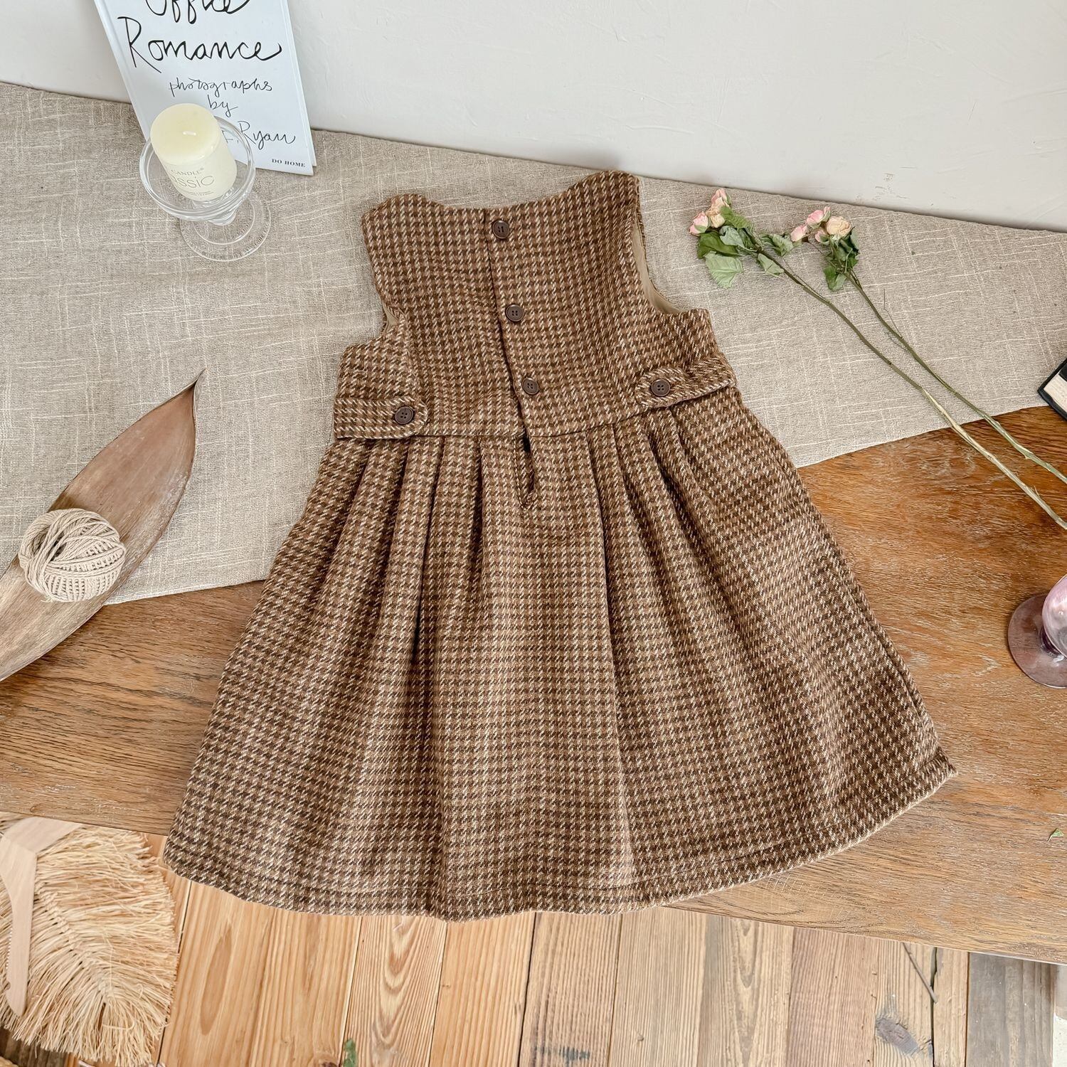 【予約商品】[90-140cm] houndstooth pinafore dress