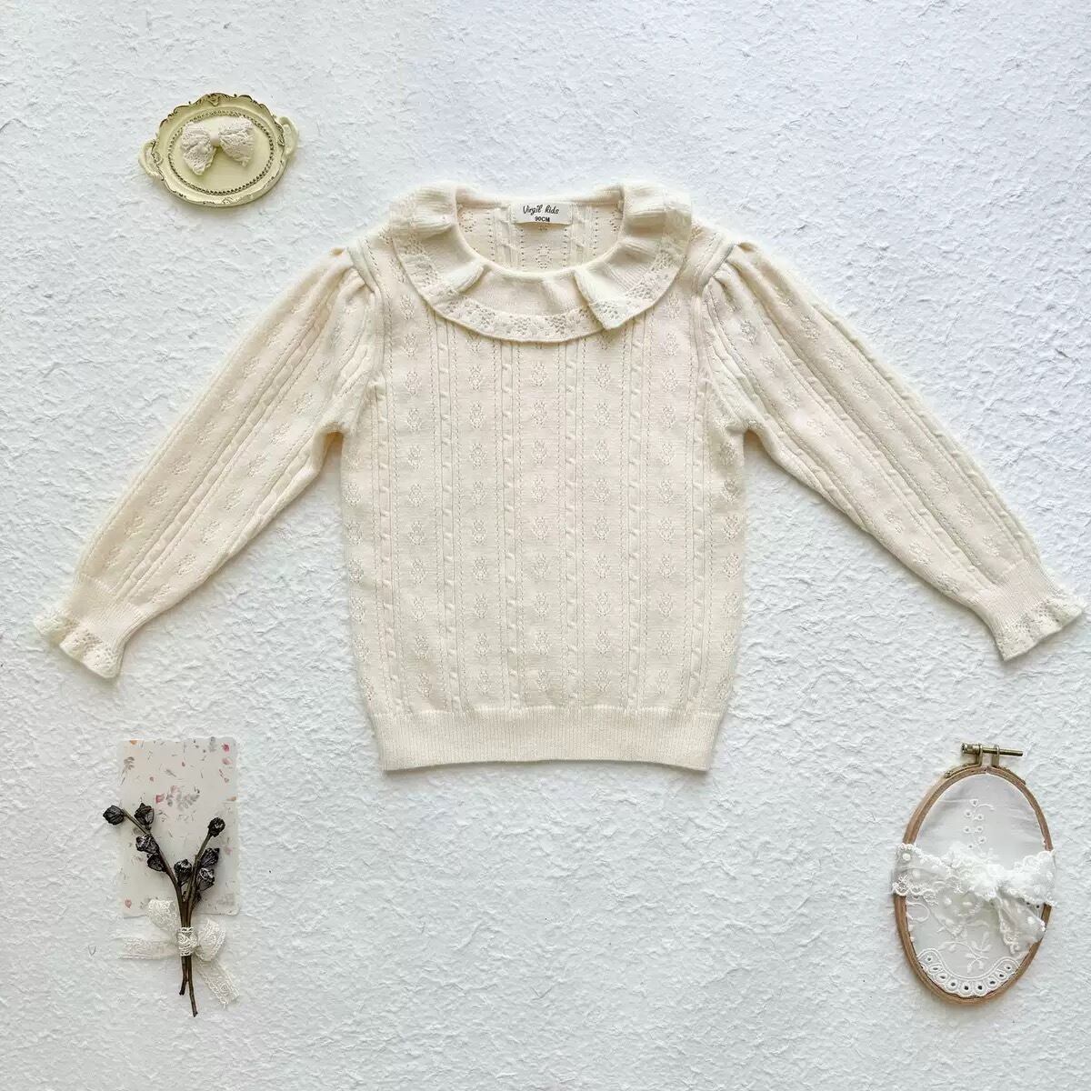 【予約商品】[90-140cm] eyelet round collar knit tops 3col