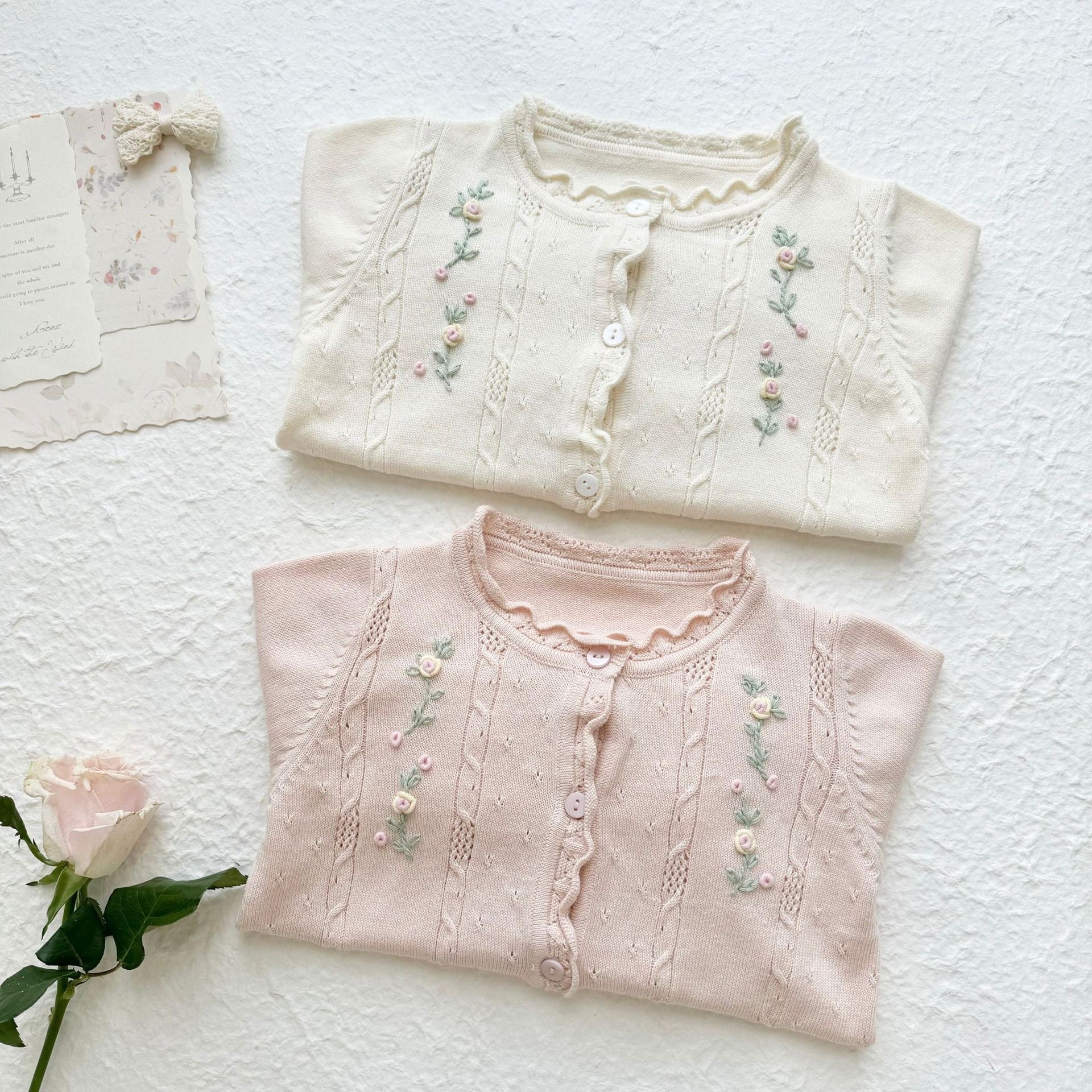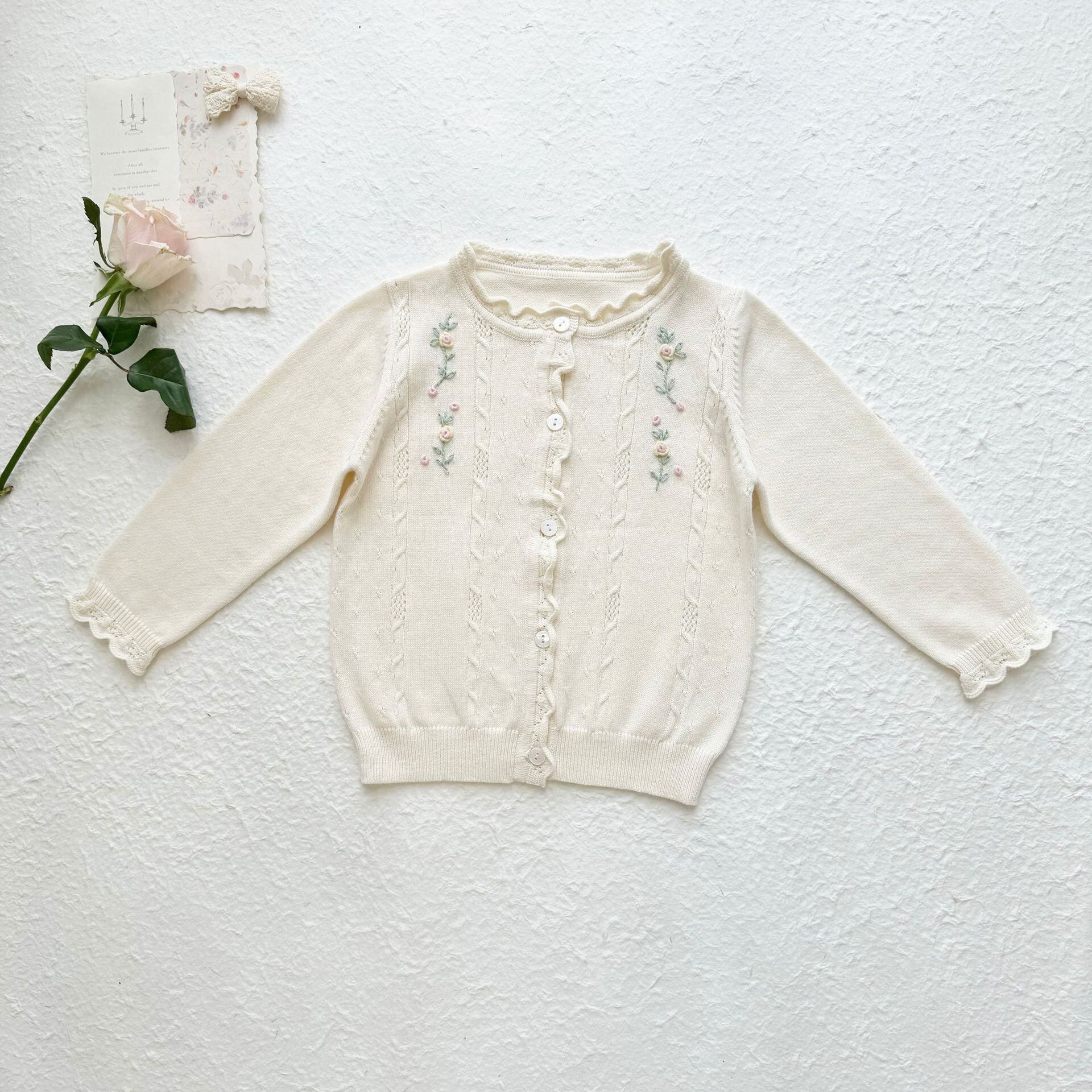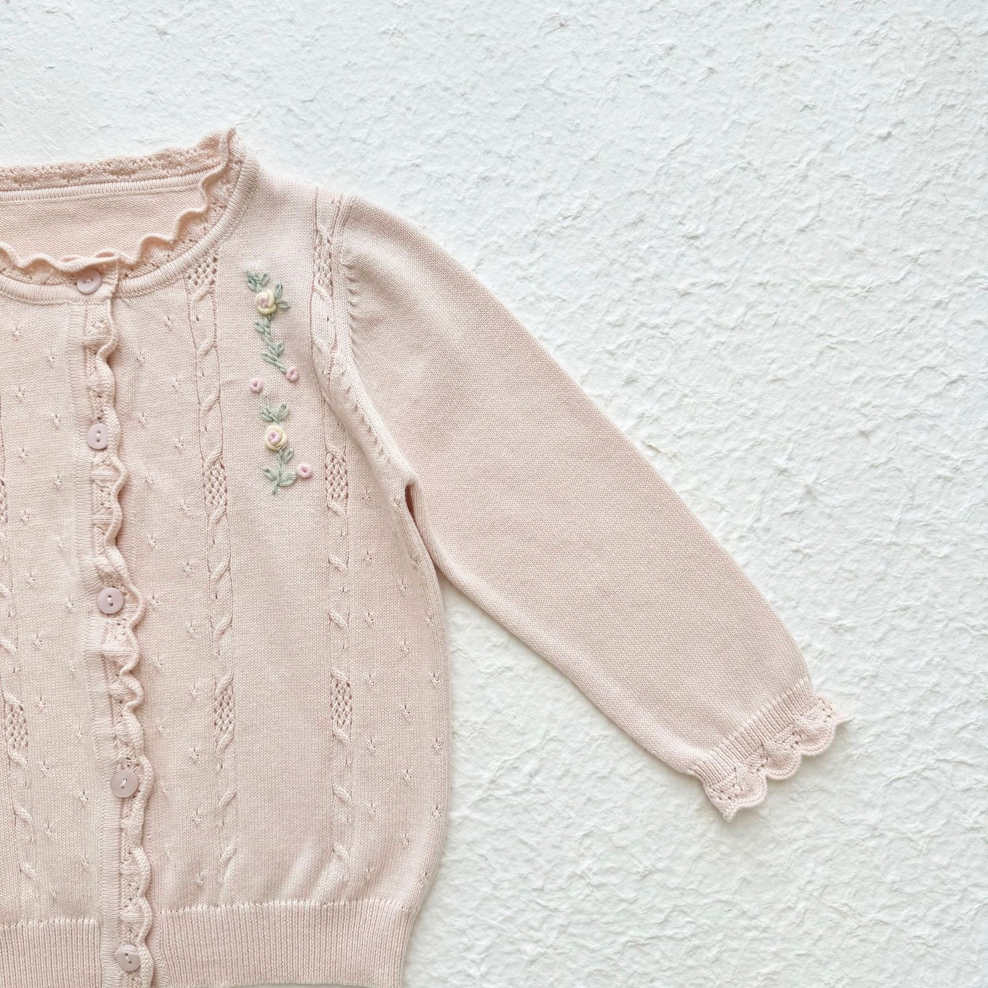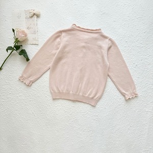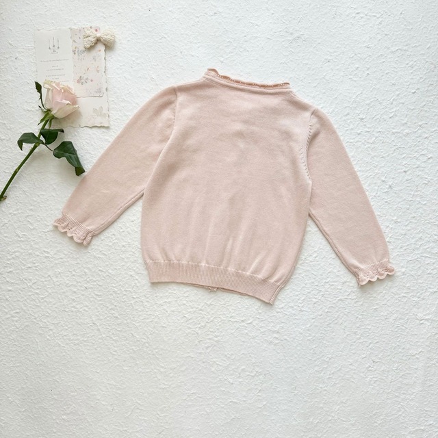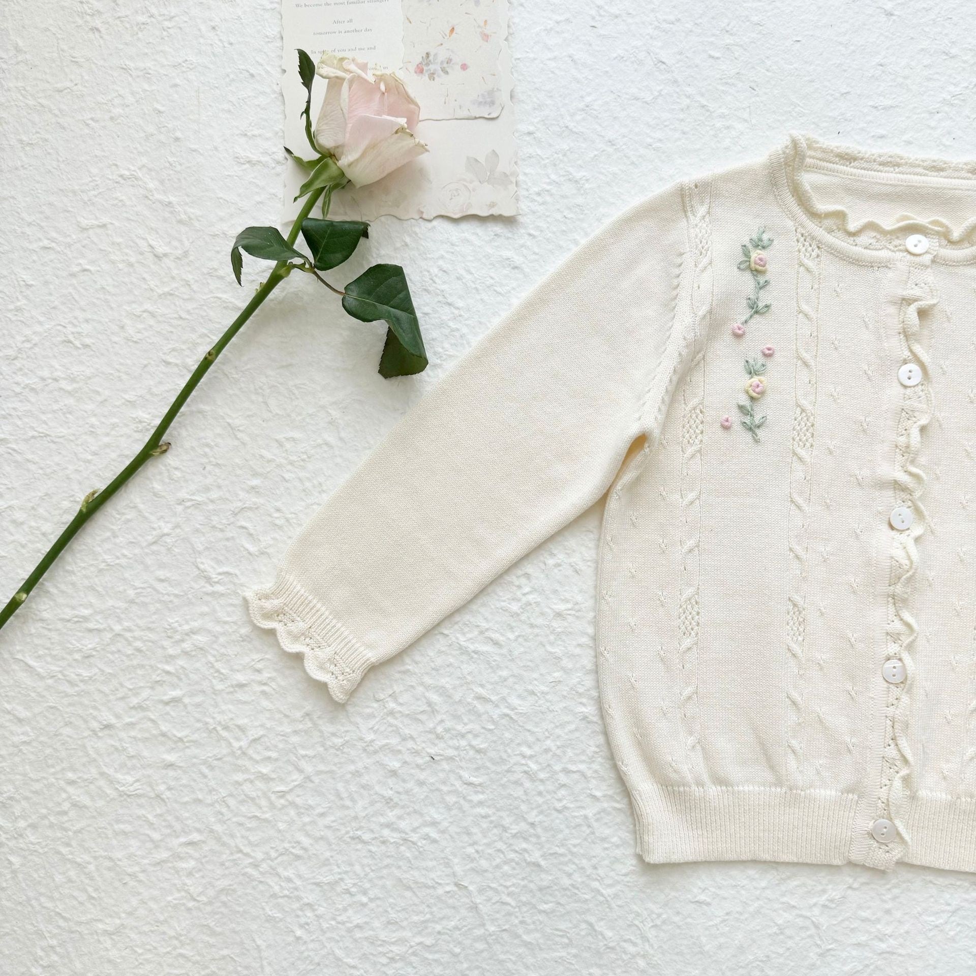 【予約商品】[90-140cm] embroidery rose scallop knit cardigan 2col