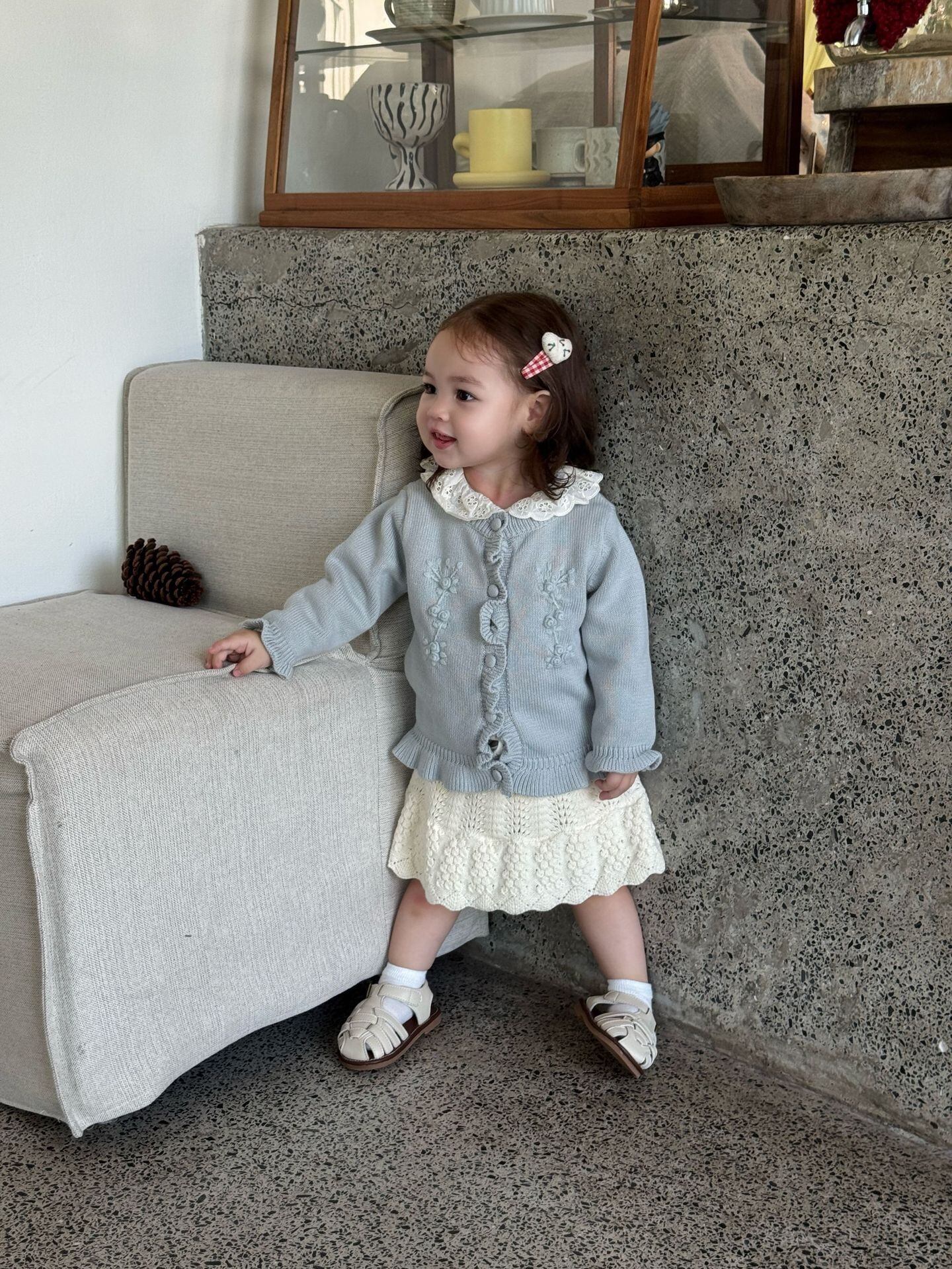 【予約商品】[73-110cm] covered button frill knit cardigan 2col