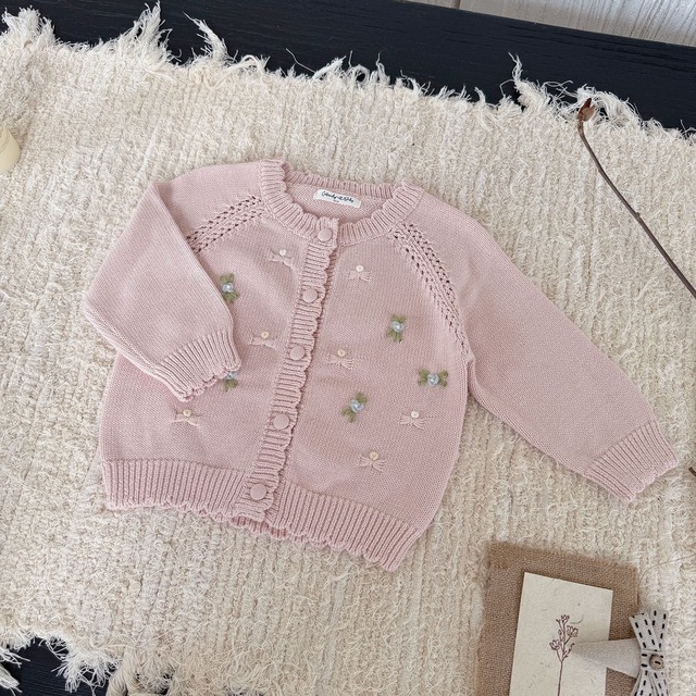 【予約商品】[73-110cm] pastel scallop knit cardigan 2col