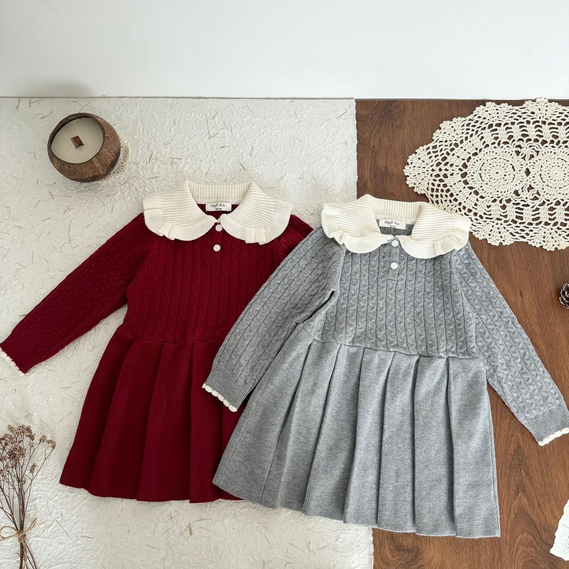 【予約商品】[90-140cm] vintage scallop collar dress 2col