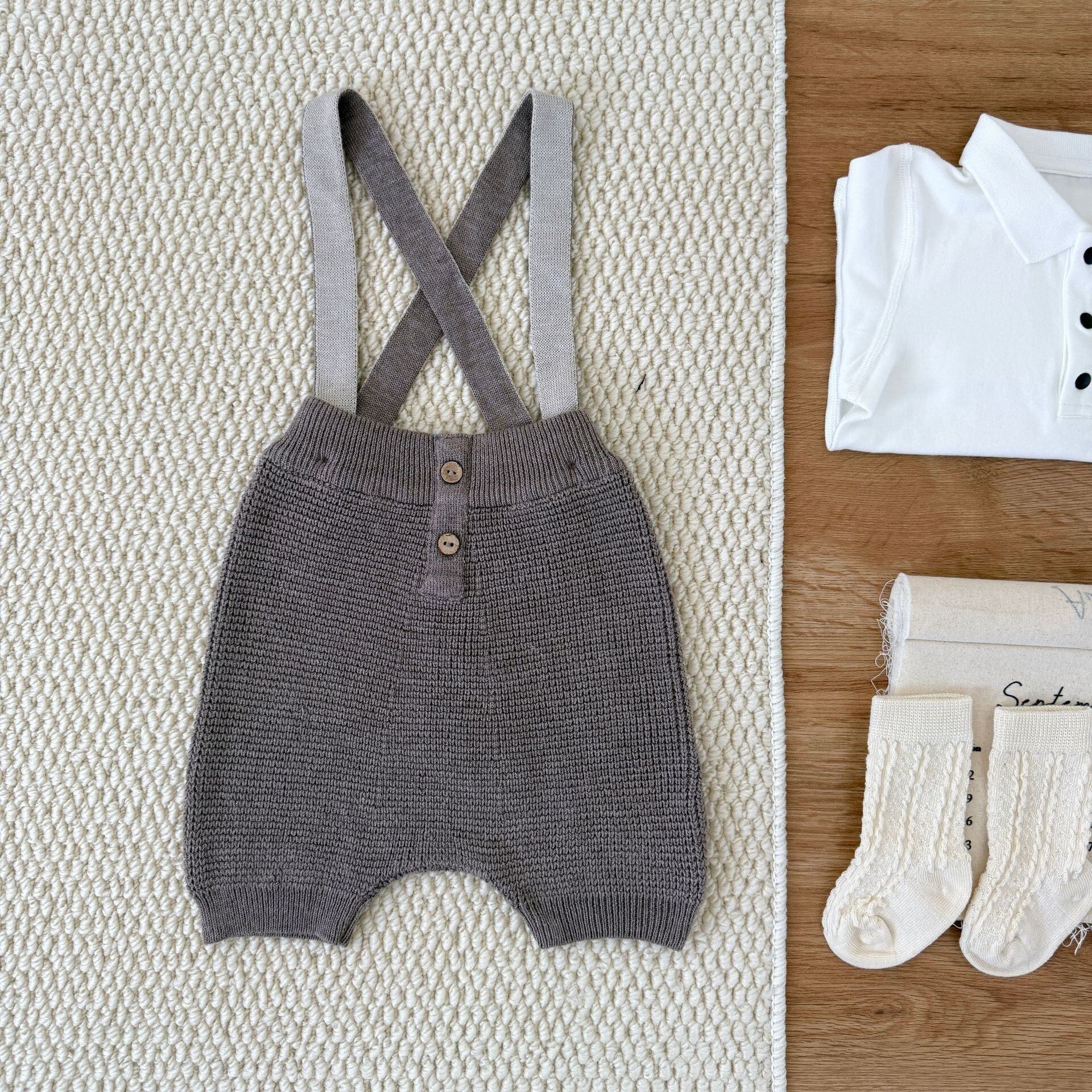 【予約商品】[73-110cm] suspenders knit short pants 2col