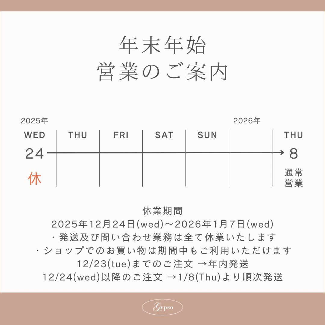 12/24(wed)以降のご注文 →1/8(Thu)より順次発送